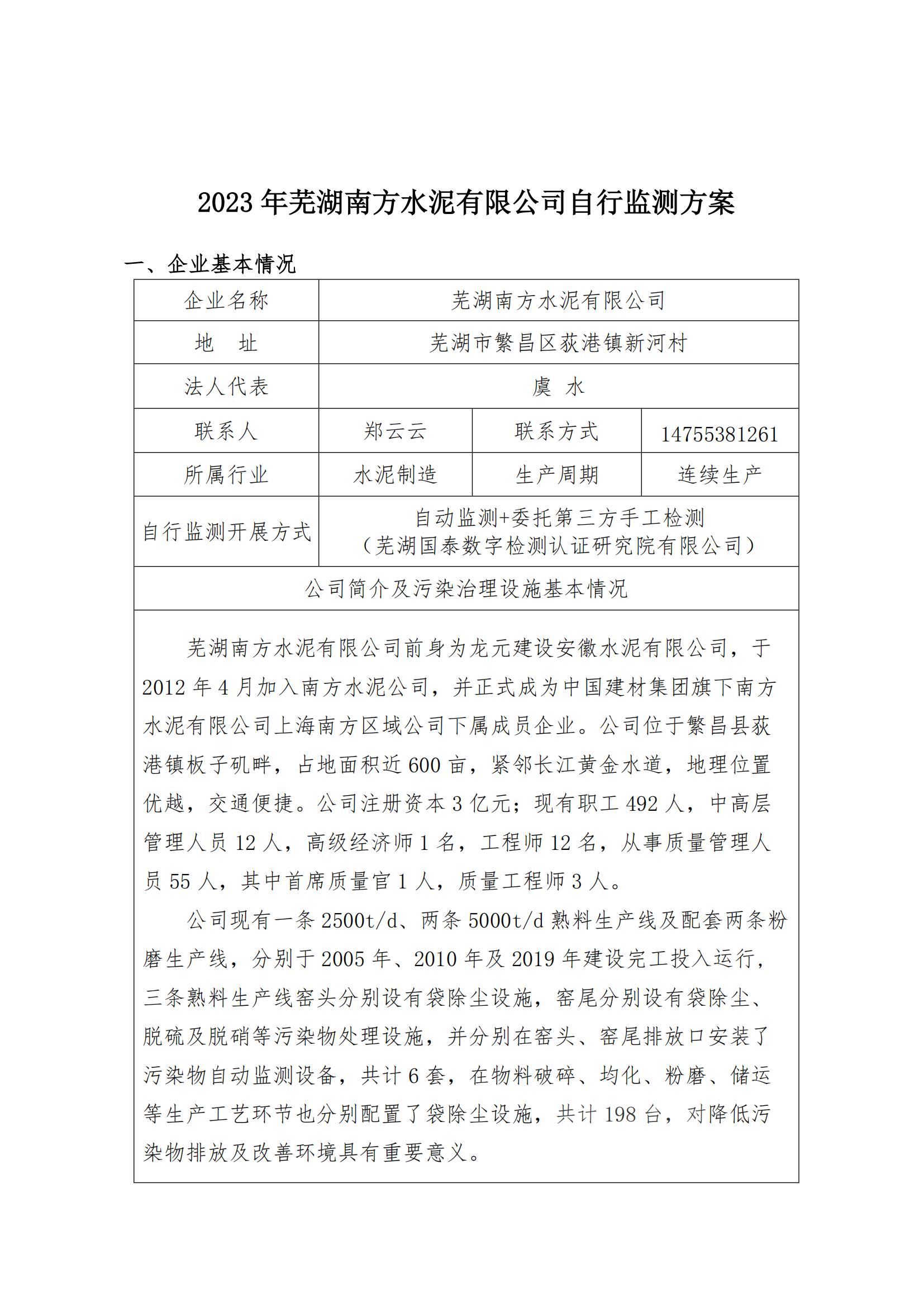 凯发平台·(中国区)官方网站 2023年自行监测方案