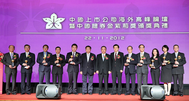 2012年11月22日,由大公报主办,香港与内地多家知名管理机构、证券机构联合举办的中国证券"金紫荆奖"在香港揭晓。中国建材股份有限公司(中国建材HK3323)荣获"最具投资价值上市公司"和"最佳投资者管理上市公司"两项大奖。这是中国建材继2011年荣膺"最佳上市公司"奖后再获殊荣。